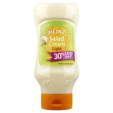 No salad is complete without a liberal covering of Heinz Squeezy Light Salad Cream to top it off.We are all familiar with the great fresh taste of Heinz Salad Cream, but now we can enjoy that flavour without having to worry about those extra calories thanks to Heinz Light Salad Cream.The Heinz Squeezy Light Salad Cream Top Down has the top at the bottom (if you know what I mean) meaning that your salad cream is easily squirted right up until the last drop.